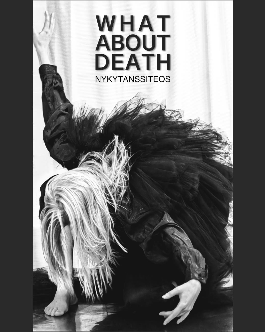 What About Death -nykytanssisoolo käsittelee elämän ja kuoleman rajapintaa. Teos saa löyhästi inspiraationsa Kalevalan hahmosta Tuonen tyttö, joka vie kuolleiden sieluja Tuonelan virran yli Manalaan. Kalevala-teoksessa Tuonen tyttö toimii elämän ja kuoleman rajalla lautturina ja eräänlaisena oppaana. Hän on siis olemassa sekä eläville että kuolleille, ja on tietoinen sekä elämästä että kuolemasta. Tuonen tytön edustama välitila toimii teoksen pohjana. Tämä välitila mahdollistaa tasapainoilun meille tutun ja vielä tuntemattoman maailman välillä, ja sen kautta työryhmä voi käsitellä tuntematonta muutosta. Teoksessa nykytanssin rinnalla kuullaan esiintyjän death growling -äänitekniikalla tuotettua äänenkäyttöä.
