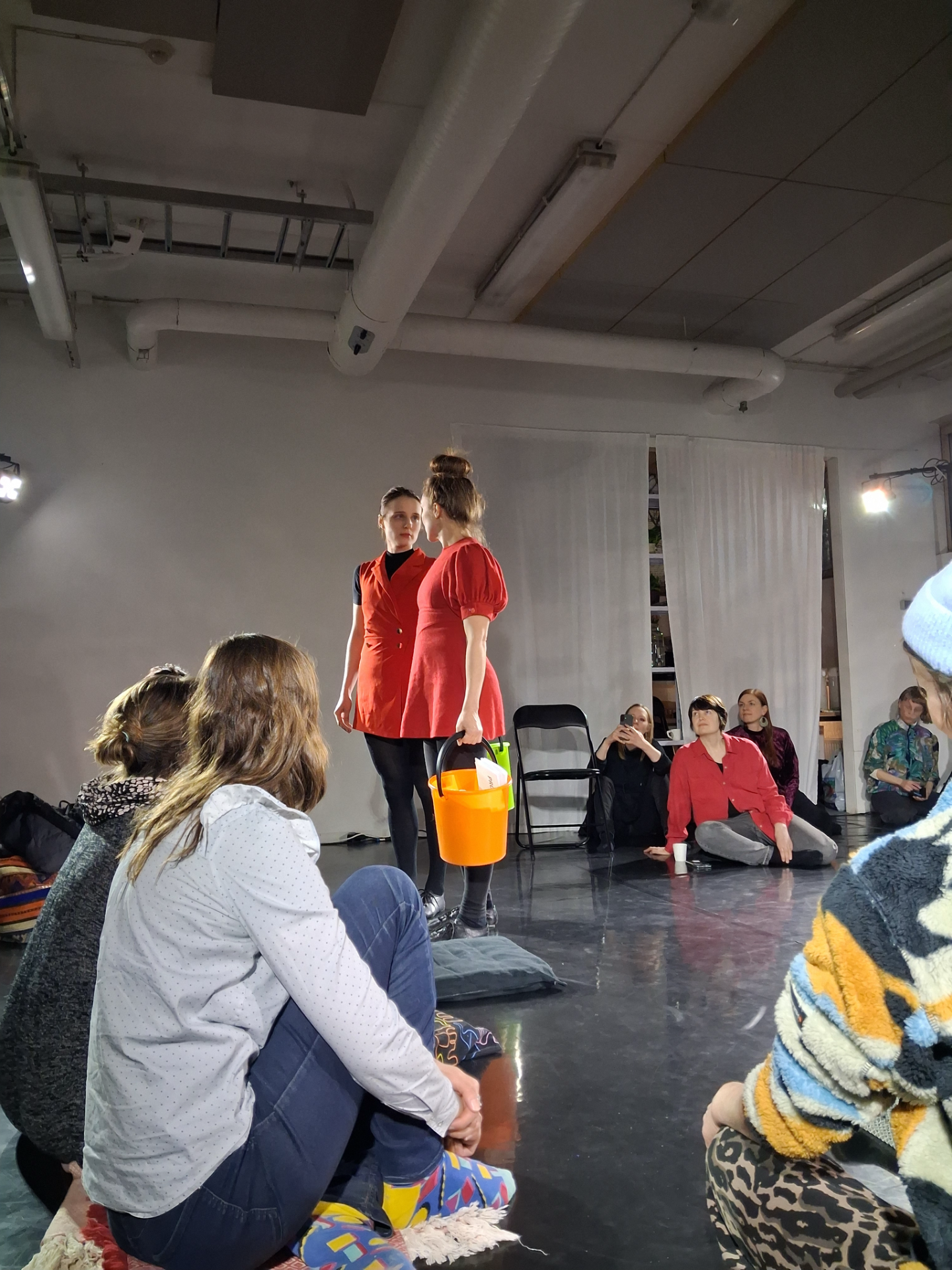 Katia Skylar & Elo Järv are freelance performance makers and actors who began their collaboration during their studies in the Contemporary Physical Performance Making (CPPM) MA program at Estonian Academy of Music and Theatre. Their shared practice is grounded in physical research, attention, and process-oriented working methods. Together, they explore everyday situations, relational dynamics, and embodied labor through experimentation and work-in-progress formats.