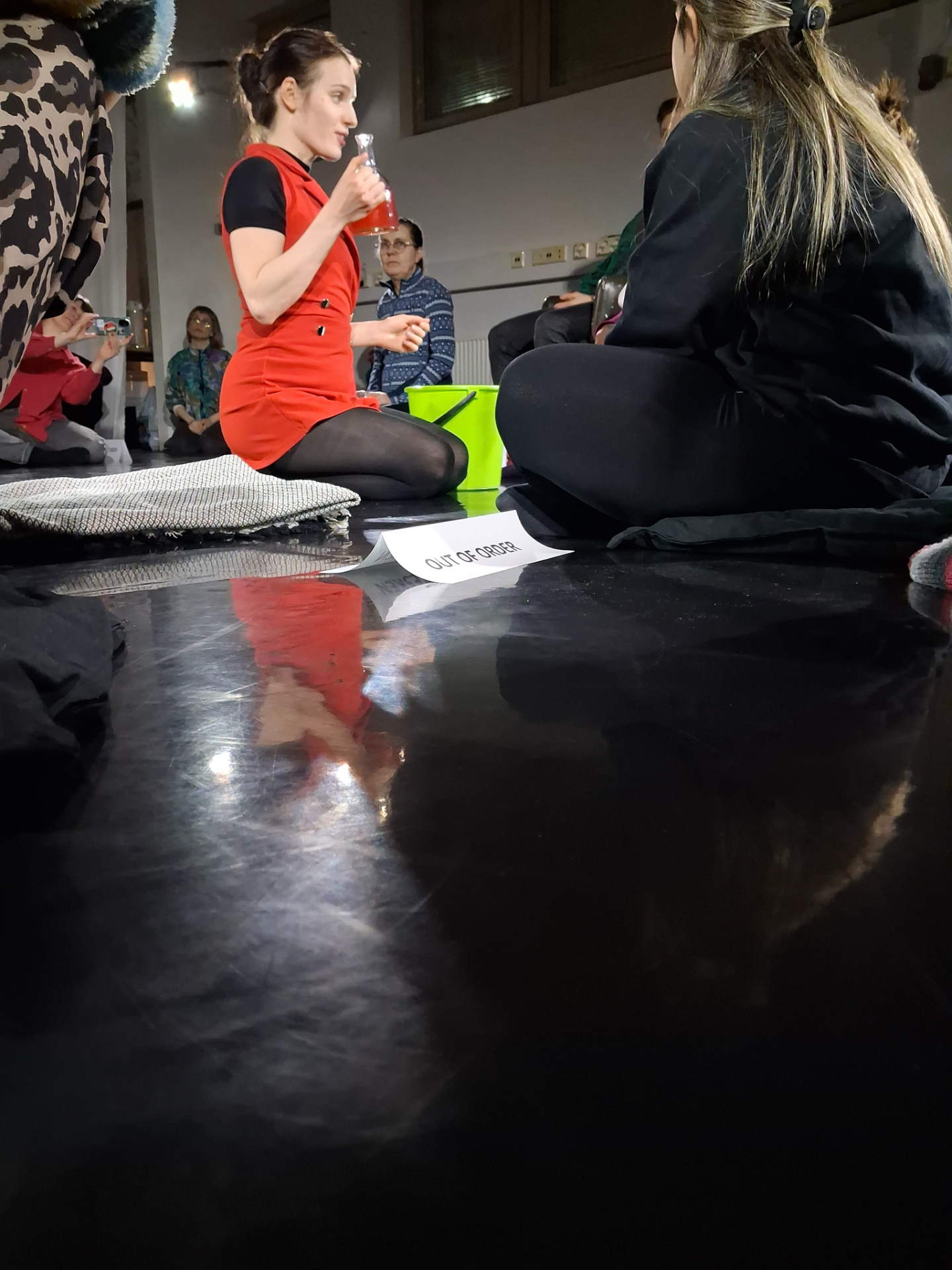Sen ytimessä ovat kuoleman ja uudelleensyntymän kysymykset palvelutyössä sekä jatkuva responsiivisuuden jännite – mitä minulta tarvitaan juuri nyt? Tämä jakaminen kutsuu yleisön todistamaan yhä keskeneräistä prosessia ja performatiivista osuutta, joka on vasta muotoutumassa.
